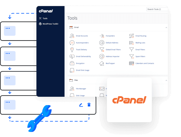 cPanel es uno de los paneles de control de hosting más avanzados y populares del mercado. Permite a tus clientes gestionar fácilmente su alojamiento web, sitios web, correos electrónicos y bases de datos desde una interfaz intuitiva